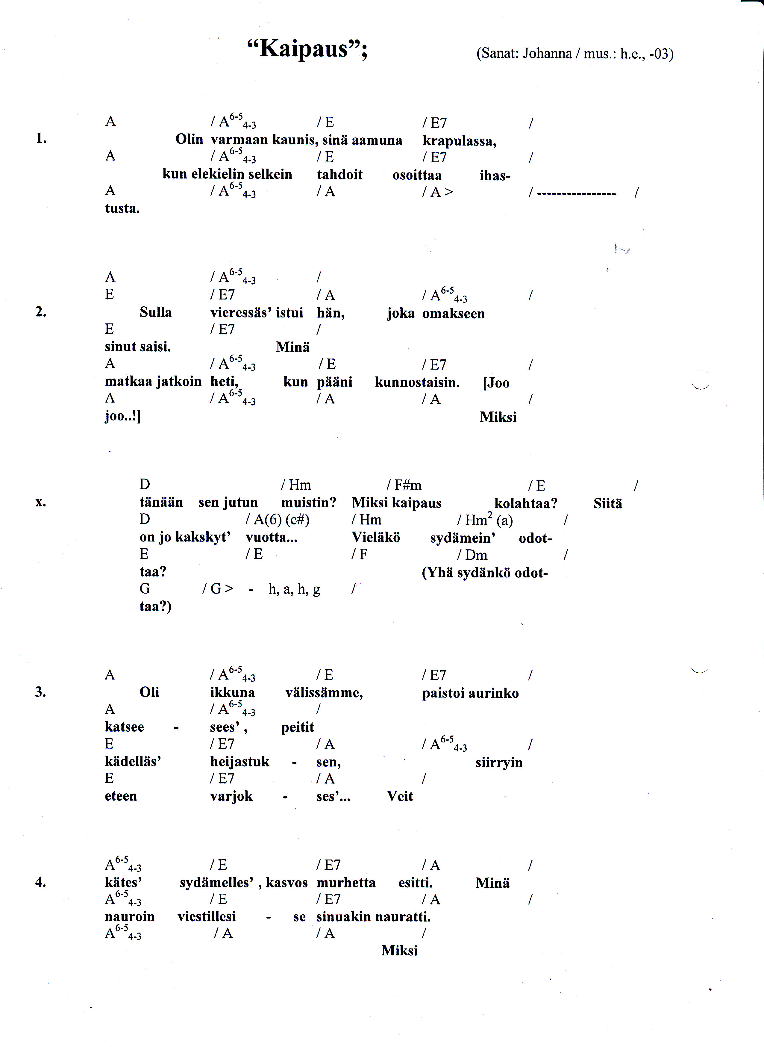 (Sanat: Johanna / mus.: Hans Eränummi, -03)