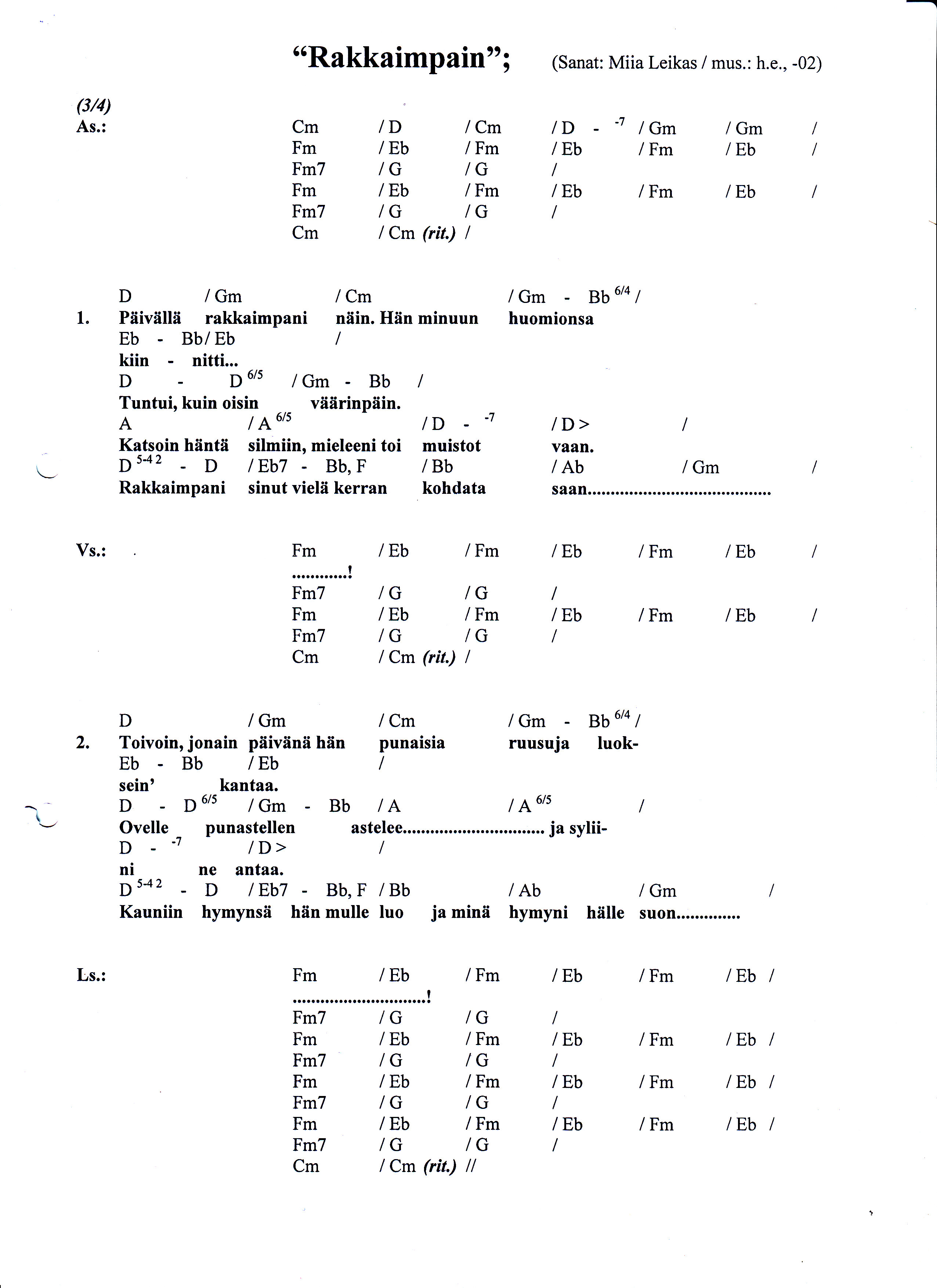 (Sanat: Miia Leikas / mus.: Hans Eränummi, -02)